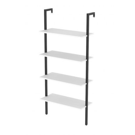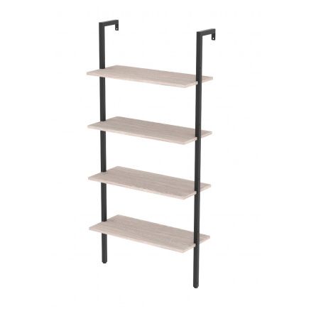 Стеллаж оснащён 4 полками размером 675×295 мм каждая, а расстояние между полками составляет 300 мм — оптимально для книг, коробов, ваз и большинства предметов декора. Для дополнительной устойчивости предусмотрено крепление к стене и одновременный упор на пол, что снижает риск опрокидывания.
