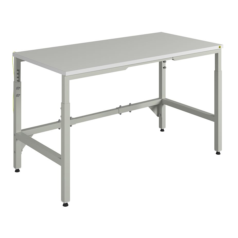 Ключевое преимущество модели — сочетание прочности и ESD-защиты. Антистатические свойства соответствуют требованиям ГОСТ IEC 61340-5-1-2019, что особенно важно в мастерских, производственных цехах и на участках, где работают с чувствительной электроникой. Каркас рассчитан на серьезные нагрузки: стол уверенно держит до 400 кг, сохраняя стабильность при ежедневной интенсивной эксплуатации.
